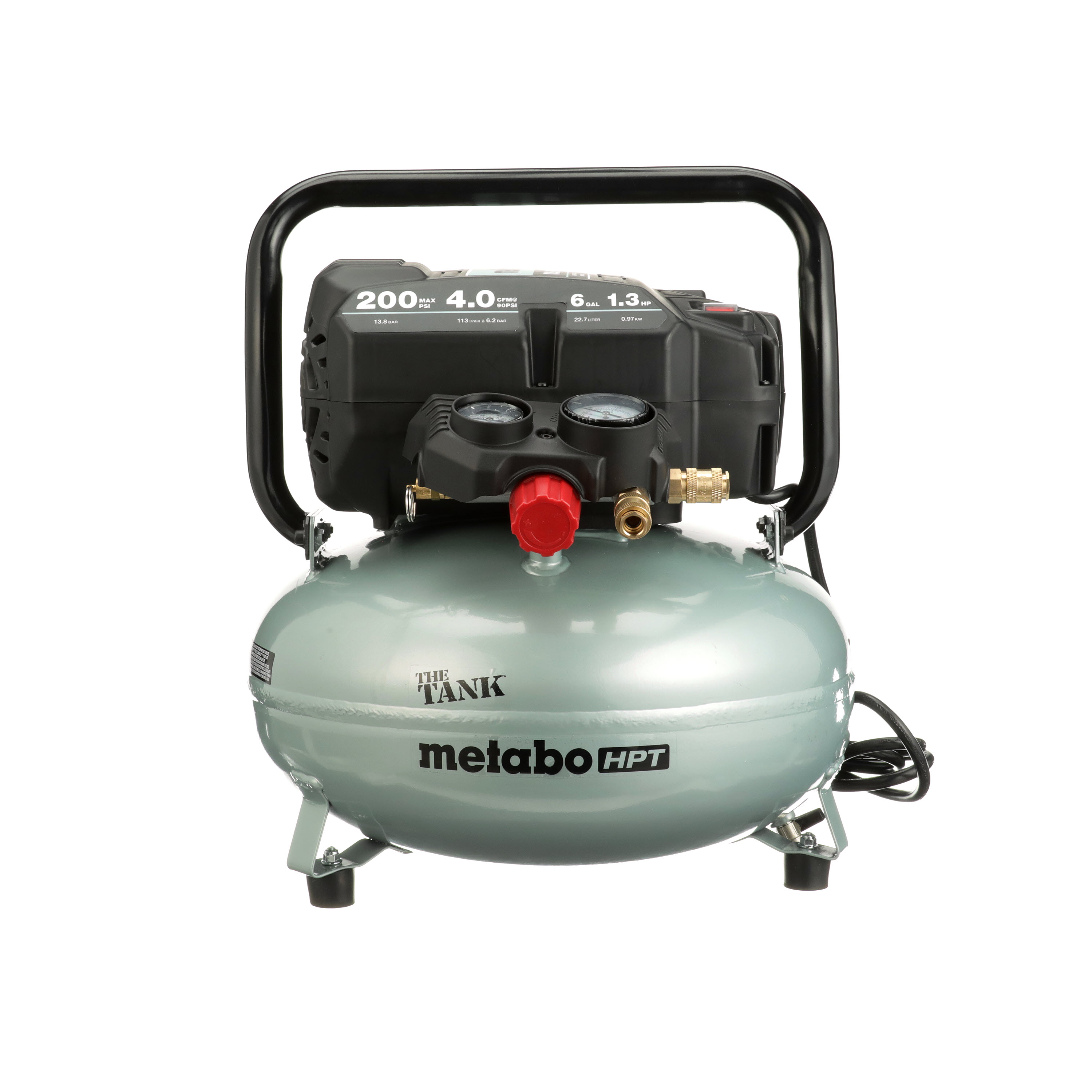 Metabo HPT is reinventing the jobsite compressor with THE TANK™. With class leading PSI and weighing only 41lbs, this lightweight compressor packs more pressure into a smaller body. It is engineered with the power to run a framing, roofing or siding crew, and is versatile enough to run a team of five 18Ga nailers at a time. THE TANK offers serious pros a next level compressor, which provides the most demanding framer no downtime while driving nails flush. THE TANK has the capacity and PSI to simultaneously run (2) framing nailers or (2) siding nailers or (2) roofing nailers at the same rate of production as a traditional jobsite compressor. Finish crews can even run (3) 15Ga or 16Ga finish nailers or (5) 18Ga brad nailers. At 200 PSI and 4 CFM at 90 PSI, you can get more work done with less weight. THE TANK rolls through the toughest jobsites with the power and performance to get the job done!
