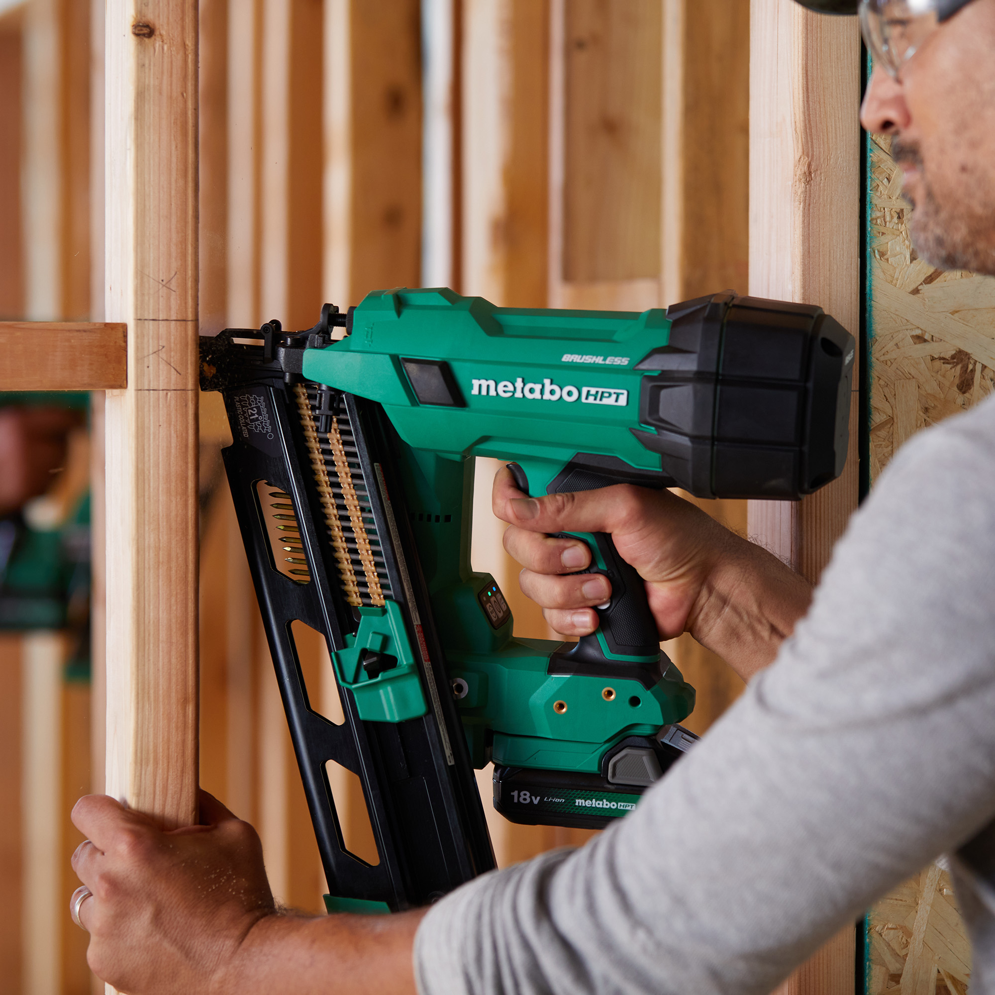 The Pro Preferred Brand of Pneumatic Nailers*1 proudly introduces the next generation of the 21º Plastic Strip Framing Nailer, the NR1890DRA, setting a bold new standard for cordless framing nailers. This tool builds on the excellence of its predecessor (NR1890DRST) with exciting upgrades designed to enhance your experience. Now weighing a full pound less, the NR1890DRA is lighter, more compact, and perfectly balanced, making it even easier to handle and maneuver. With an impressive 120 joules of power, you’ll easily drive up to 3-1/2” nails into tough materials like laminated veneer lumber, while the aggressive nose design ensures a secure grip during angle nailing. The redesigned control panel is now more accessible and easier to read, simplifying operation. Plus, with enhanced indicator lighting and a new LED light, visibility is improved, ensuring a smooth and seamless workflow. The upgraded aluminum magazine not only boosts durability but also makes nail swaps quicker and more convenient. Elevate your projects and experience the future of framing with the all-new NR1890DRA!