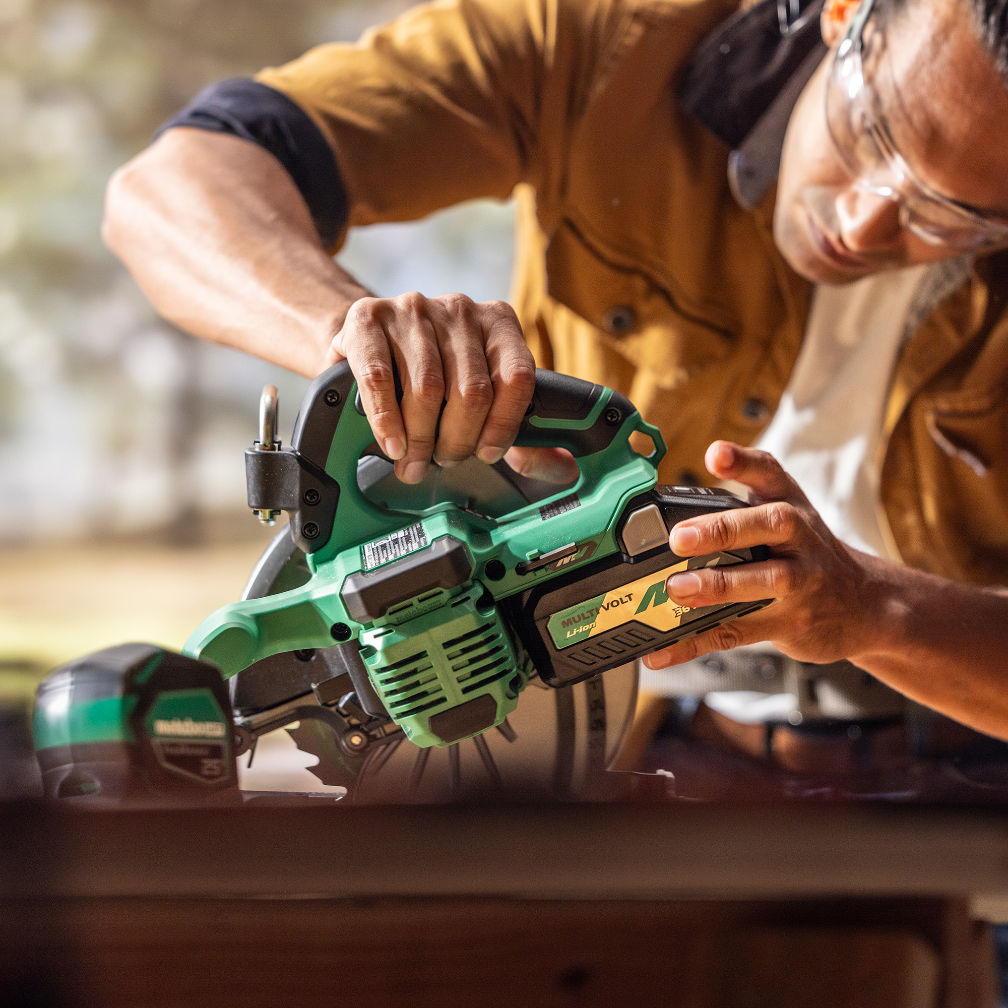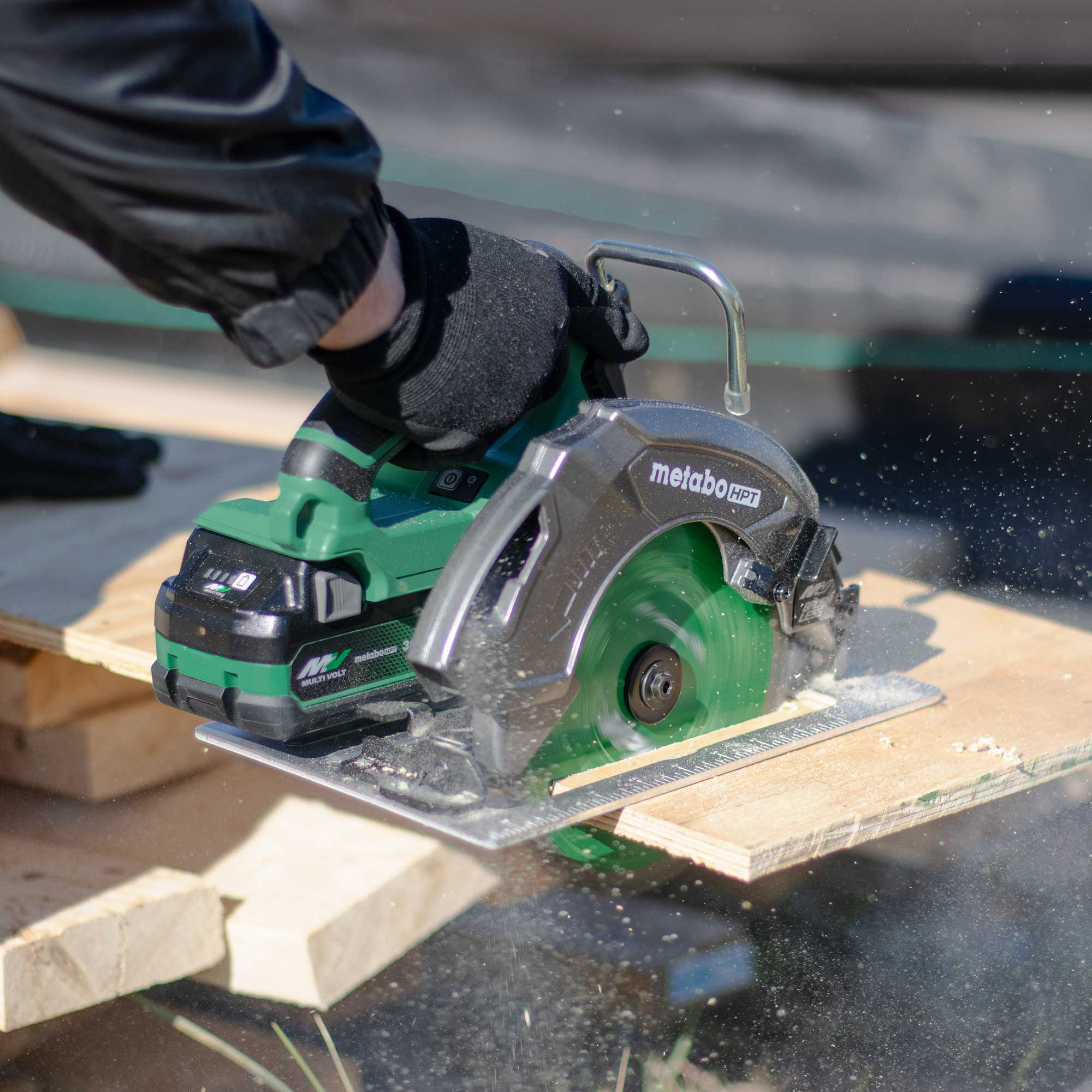 This 36V Cordless 7-1/4” Circular Saw is part of the expanding MultiVolt™ system of power tools from Metabo HPT. It accepts any MultiVolt battery for extreme power and runtime and can also accept the unique AC Adapter (ET36A) to plug in for all day runtime, offering ultimate versatility and power on the GO.