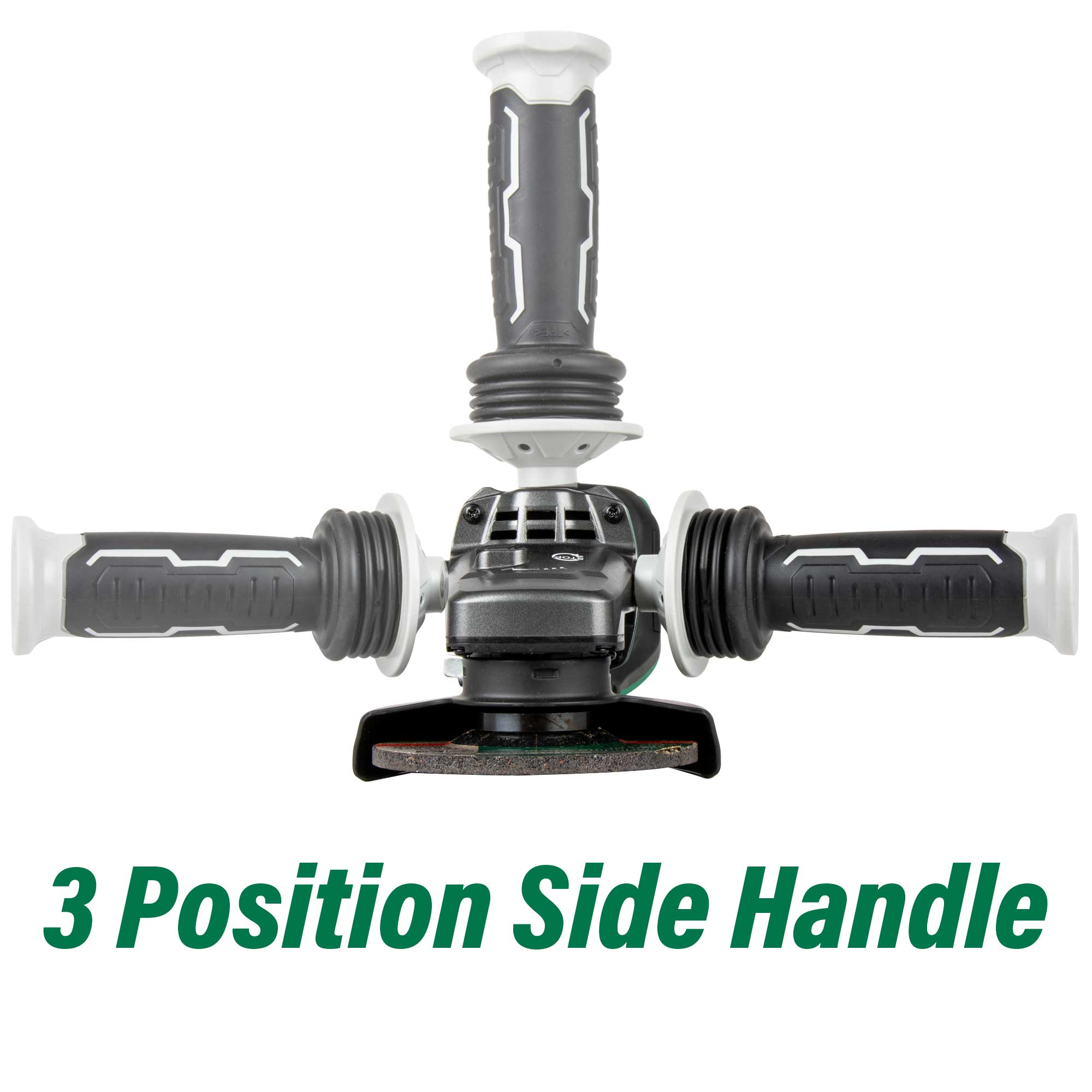 • 3 POSITION ANTI-VIBRATION SIDE HANDLE: To allow for safe grinding even in narrow spaces
