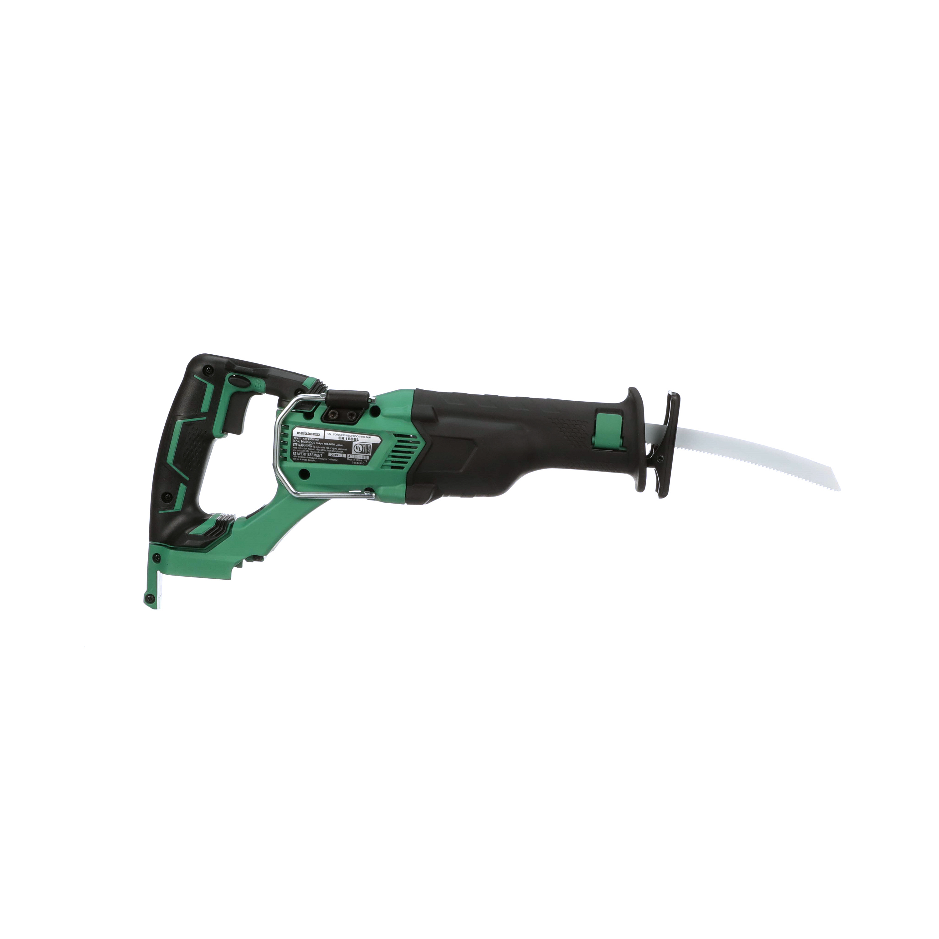 The Metabo HPT 18V Cordless Reciprocating Saw (CR18DBLP4). This reciprocating saw features a brushless motor and constant speed control to deliver remarkable performance and tool life. With an impressive stroke length of 1-17/64-In and up to 2,500 SPM, this light weight tool takes cutting speed to the next level. In addition, it has convenient features such as slim front body, lever-type tool-less blade changing system, lever-type tool-less shoe adjustment system, three speed modes with auto mode, big hook, and Bright LED light. The CR18DBLP4 kit comes with a curved wood blade and the tool is covered by Metabo HPT's lifetime tool warranty!