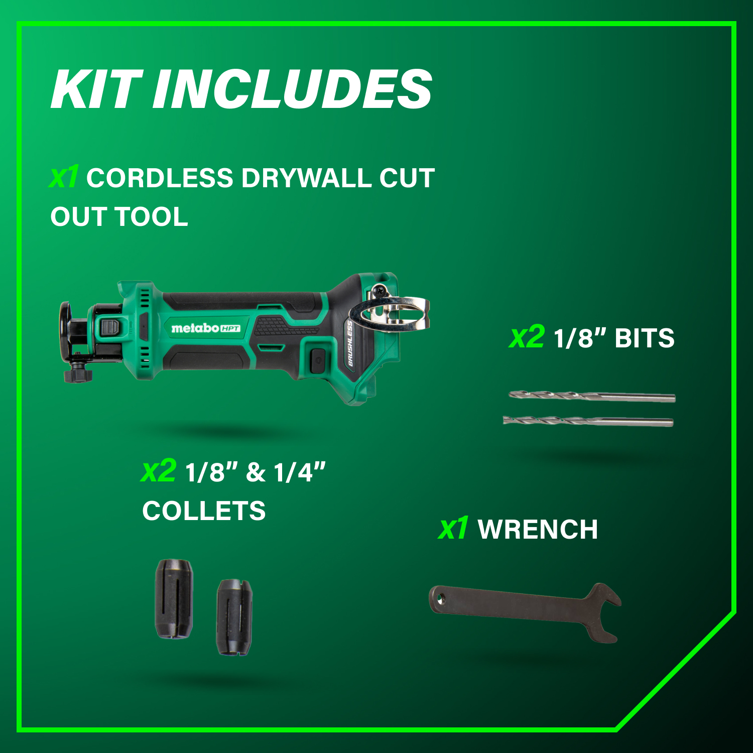 | Collet Capacity | 1/8" & 1/4" |