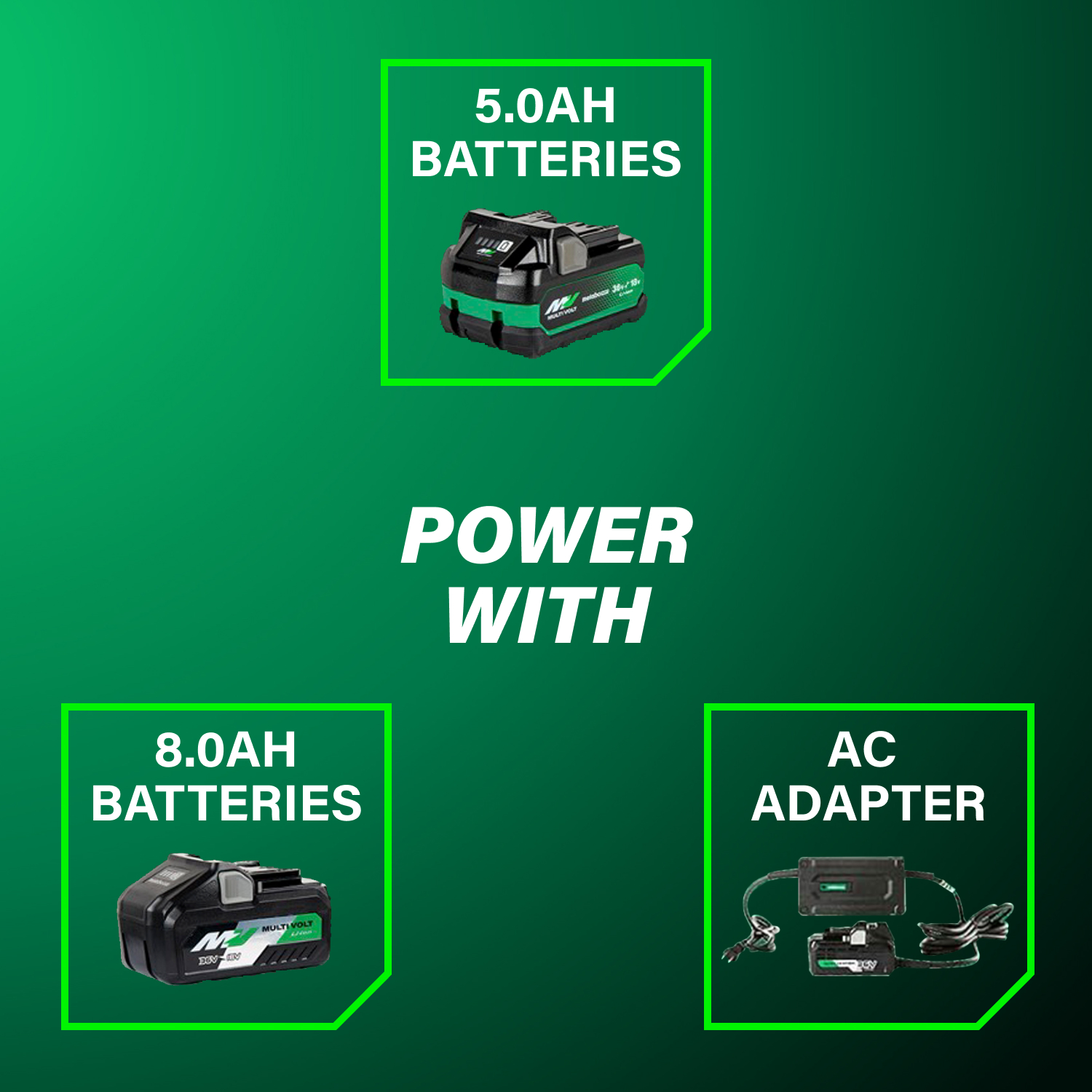 This 36V Cordless 6-1/2" Track Saw is part of the expanding MultiVolt system of power tools from Metabo HPT. It accepts any MultiVolt battery for extreme power and runtime and can also accept the unique AC Adapter (ET36A) to plug in for all day runtime, offering ultimate versatility and power on the GO.