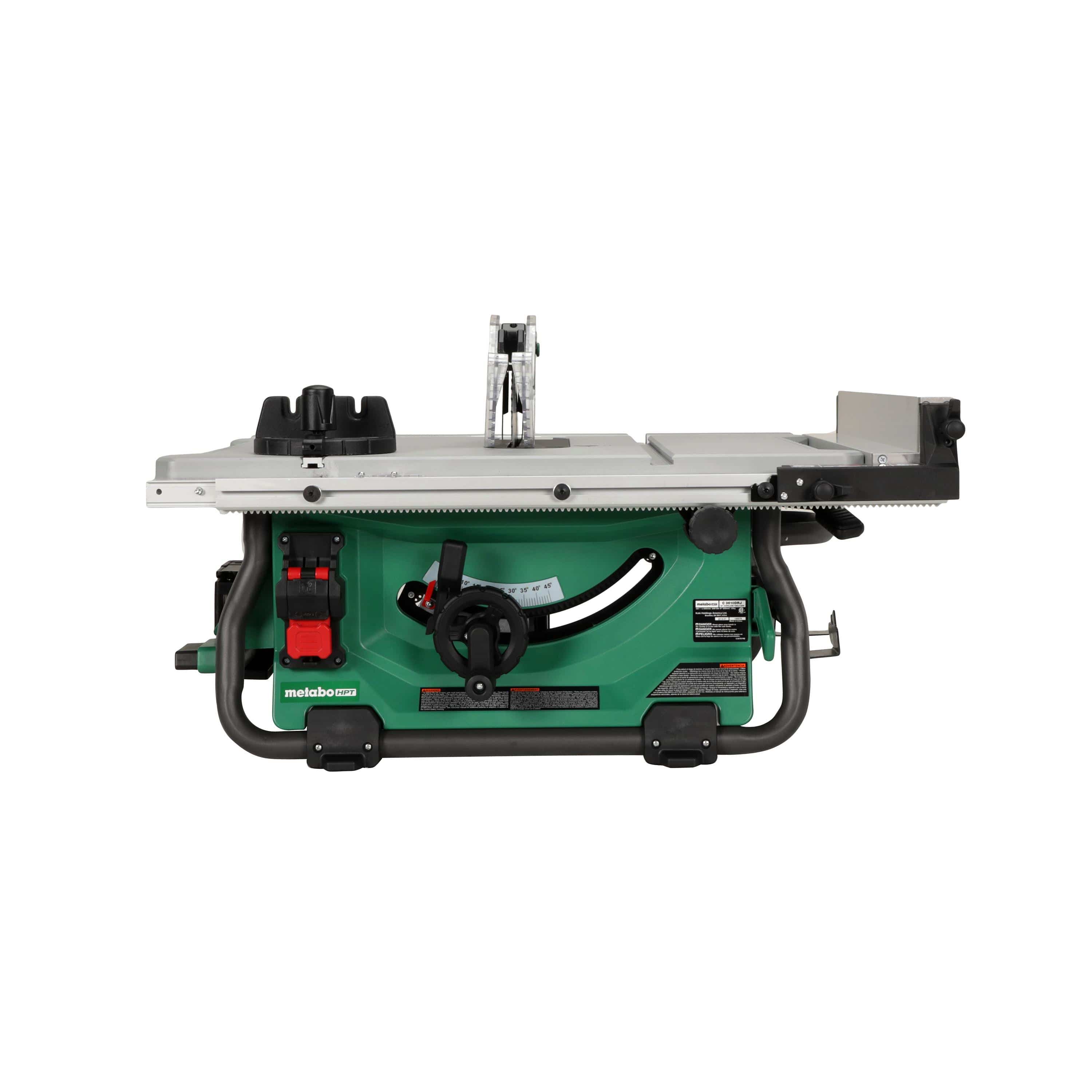 10-in 40-tooth carbide tipped blade included for high cutting capacity.