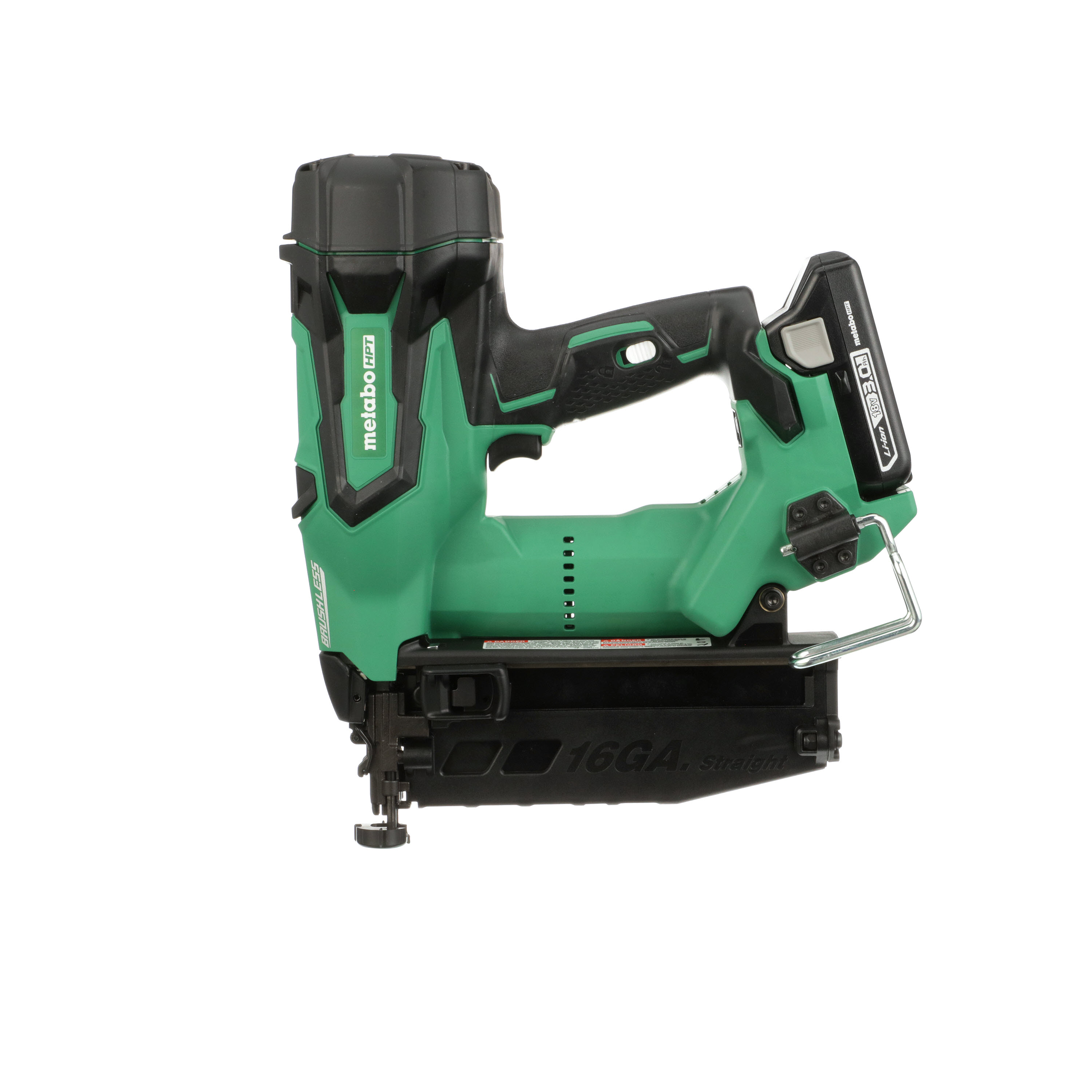 Accepts 16Ga straight finish nails from 1" - 2-1/2". With a Magazine that holds 100 16-gauge fasteners.